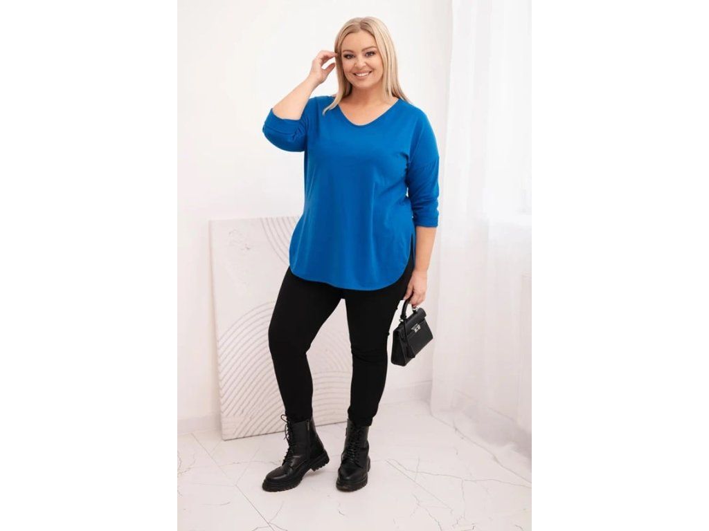 Dámská bavlněná blůza Plussize s výstřihem do V modrá