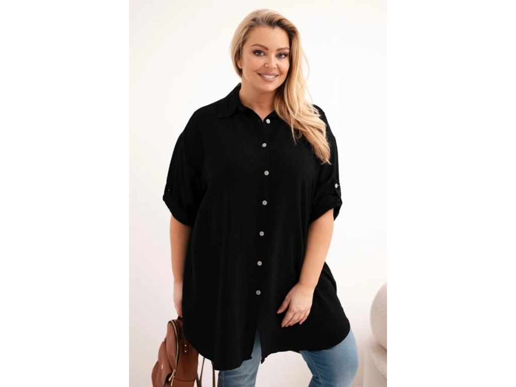 Dámská košile Plus Size z viskózy s delší zadní částí černá