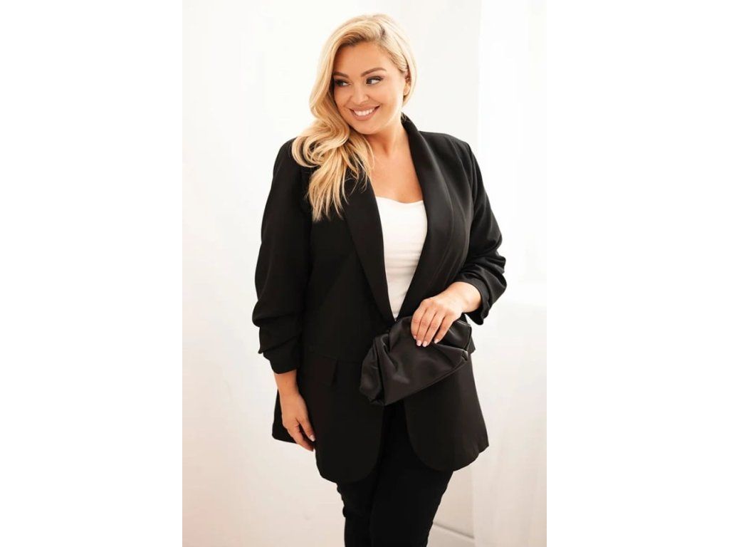 Stylová dámská bunda plus size v oversize střihu pro elegantní i ležérní outfity. Délka pod boky lichotí postavě a univerzální střih se hodí jak k šatům či do kanceláře, tak k džínám nebo legínám.