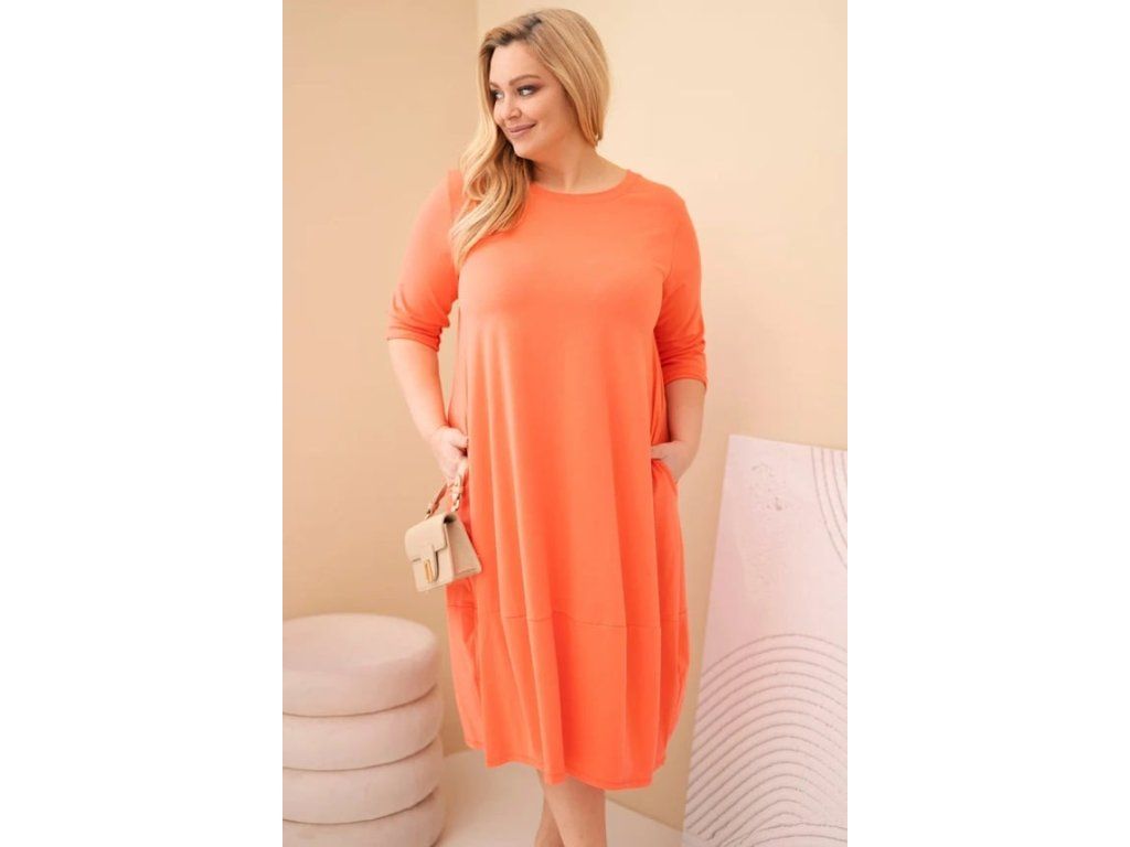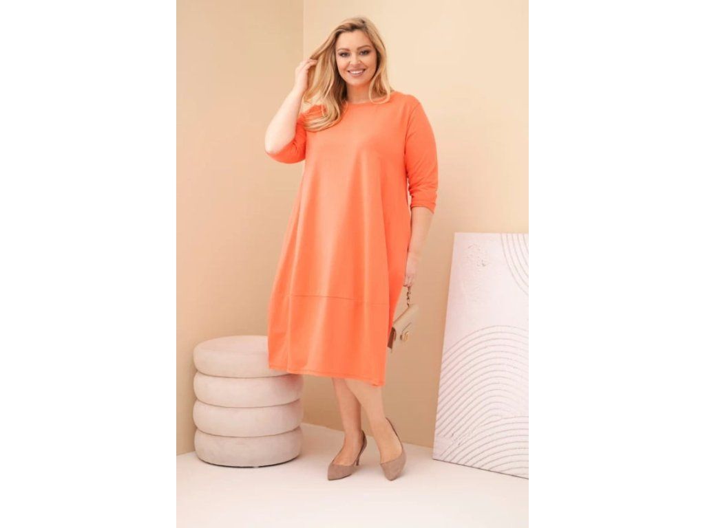 Pohodlné a stylové dámské šaty Plus Size vyrobené z měkké, elastické bavlny jsou ideální pro každodenní stylizace. Volný, pohodlný střih krásně sedí na postavě a zajišťuje volnost pohybu, zatímco ohrnuté rukávy jí dodávají lehce casualní charakter. Model má jednoduchou linii a midi délku, díky čemuž vypadá elegantně a nadčasově.