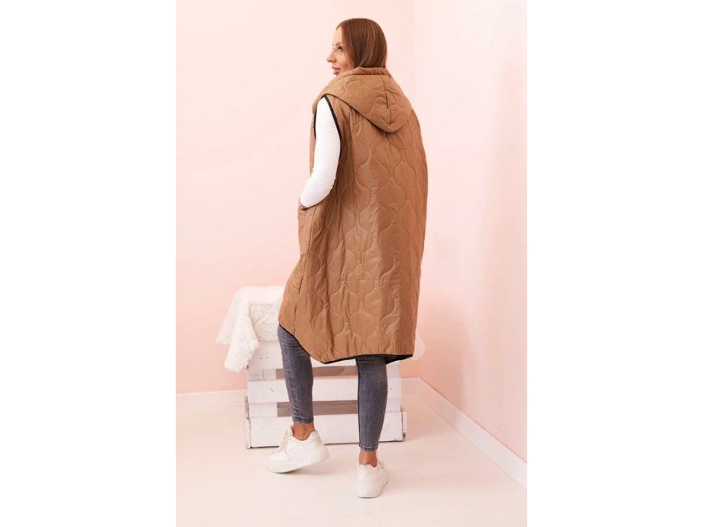 Dámská prošívaná vesta Plus Size s kapucí hnědá